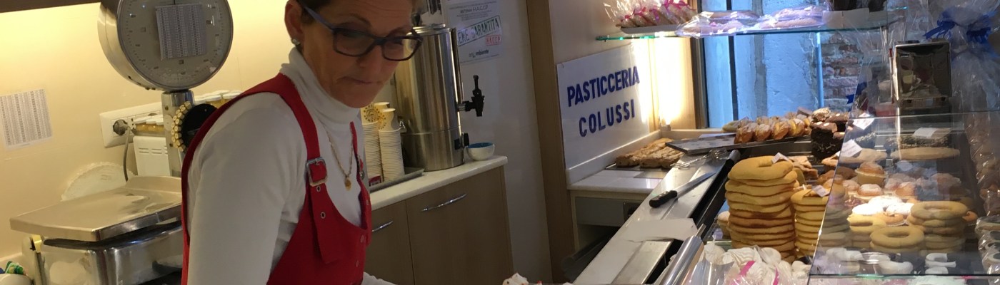Linda Colussi nata nel 1962 figlia di Franco e Ida. Unica delle tre figlie di Ida e Franco che sia rimasta ad abitare a Venezia ed è grazie a lei che la pasticceria non ha chiuso quando Franco era da solo alla produzione. Linda si occupa di tutta la parte amministrativa della attività ed è colei che trovate sempre sorridente ad accogliervi nella pasticceria. Ovviamente nelle aziende a conduzione familiare tutti devono essere capaci a fare qualsiasi cosa, quindi anche lei spesso è in laboratorio ad aiutare.