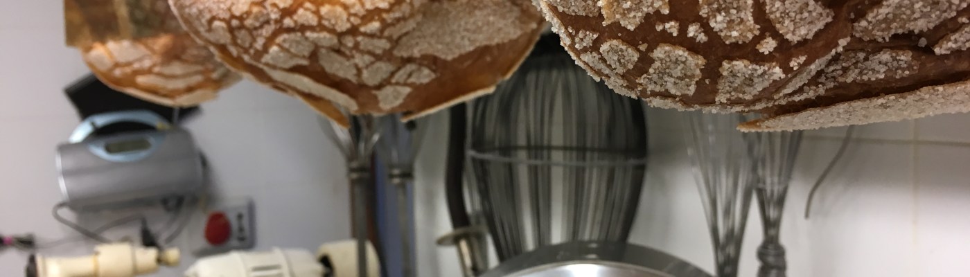 La focaccia veneziana è il nostro dolce tipico. Per comodità la chiamiamo “fugassa” in dialetto veneziano poiché al di fuori di venezia la focaccia è salata. Comunque questo dolce è lievitato con il nostro lievito madre, e come per i bacoli, anche in questo caso c’è bisogno di molta pazienza. La fugassa -per poterci spiegare meglio- potrebbe sembrare un incrocio tra un panettone e un pandoro, ma a differenza del panettone qui non ci sono canditi, né uvetta e nemmeno mandorle e rispetto al pandoro nella nostra fugassa c’è pochissimo burro. Una volta la fugassa era un dolce realizzato solo durante la pasqua, adesso invece lo produciamo durante tutto l’anno e per pasqua cambiamo solamente la forma usando il classico stampo delle colombe, ma l’impasto per noi resta sempre lo stesso. Come si vede dalla foto le fugasse una vota tolte dal forno vanno messe sottosopra, questo per evitare che si affloscino.